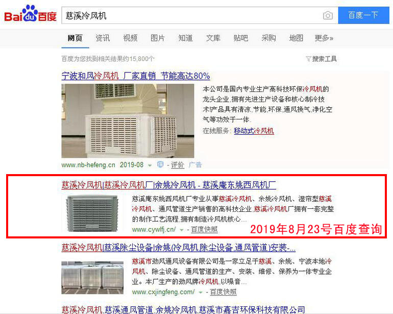 慈溪冷風機 百度(PC)自然排名第1名